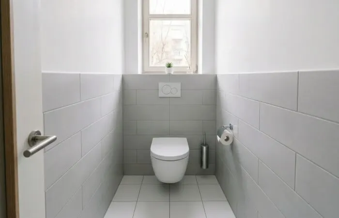 Помещение с повышенной влажностью требует влагостойких материалов — это не рекомендация, а обязательное условие. Материалы, которые хорошо ведут себя в жилых комнатах, в туалете быстро деформируются, покрываются плесенью или теряют вид.